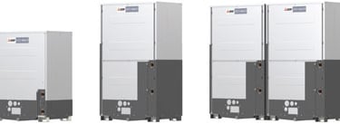 Компрессорно-конденсаторные агрегаты с водяным контуром серий «WY» и «WR2» являются альтернативой традиционным наружным блокам с воздушным теплообменником. Они имеют небольшие размеры и располагаются внутри зданий. Применение водяного контура в мультизональных VRF-системах позволяет объединить достоинства водяных и фреоновых систем.