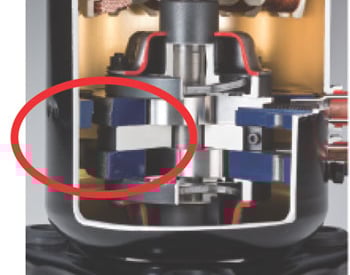 Для фиксации элементов компрессора внутри корпуса не используется точечная электросварка. Благодаря этому существенно уменьшены локальный нагрев и тепловая деформация внутренних элементов и увеличена эффективность компрессора.