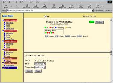 Компания Mitsubishi Electric разработала систему центрального управления AE-200E (EW-50E), которая позволяет управлять кондиционерами во всем здании или в нескольких зданиях с компьютера. Для этого используется локальная компьютерная сеть Ethernet или телефонное соединение. Представьте себе здание с системой кондиционирования, в котором нет ни одного пульта. Вместо этого каждый пользователь в соответствии с правом доступа может на экран своего компьютера вывести виртуальный пульт. Более того, имея доступ к мобильному Интернету, можно управлять кондиционированием своего офиса, сидя на пляже на Канарах.