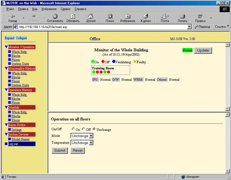Возможность управлять системой кондиционирования дистанционно может выглядеть очень привлекательной. Но еще более привлекательной кажется возможность делать сервисное обслуживание, не вставая с дивана. Контроллеры AE-200E и EW-50E позволяют следить за состоянием всей системы в реальном времени через Интернет, а также получать информацию об ошибке на электронную почту или мобильный телефон (последняя возможность зависит от оператора мобильной связи).